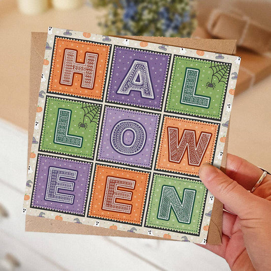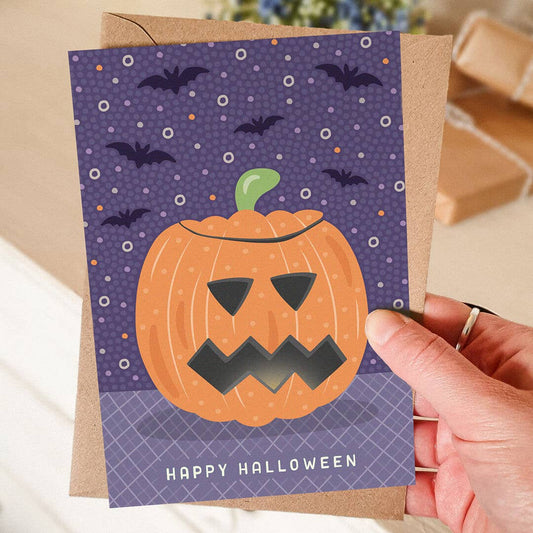 Purple and Orange Illustrated Pumpkin Halloween Card