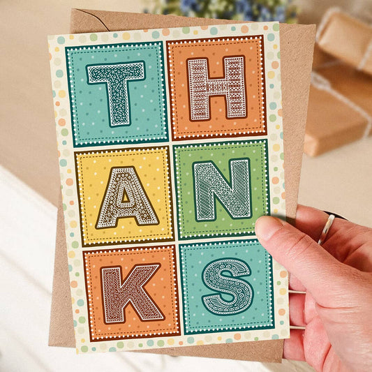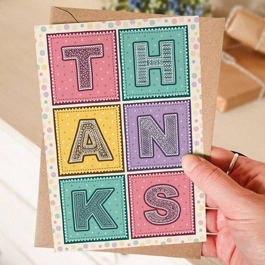 Pink Turquoise and Yellow Fun Typographic Thank You Card