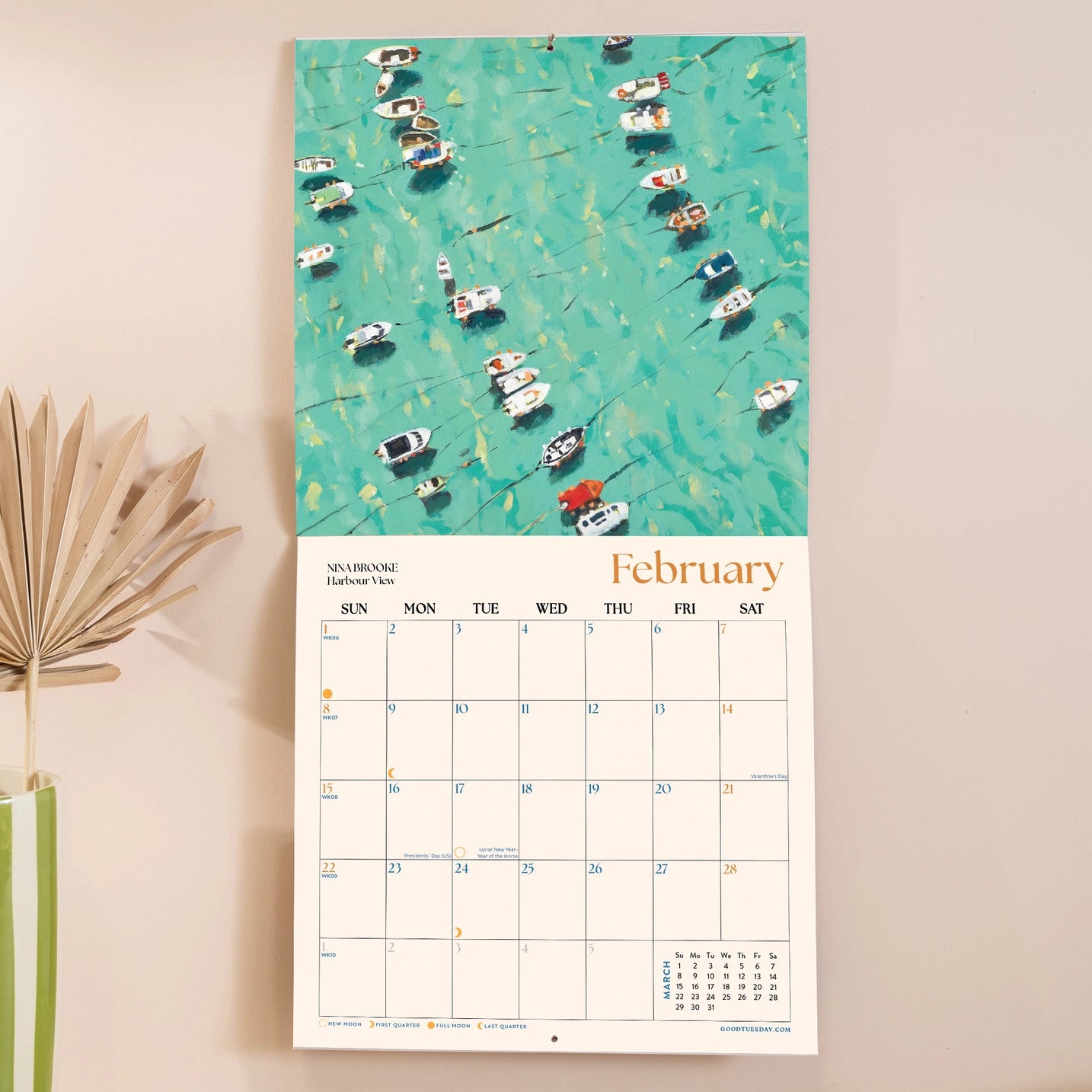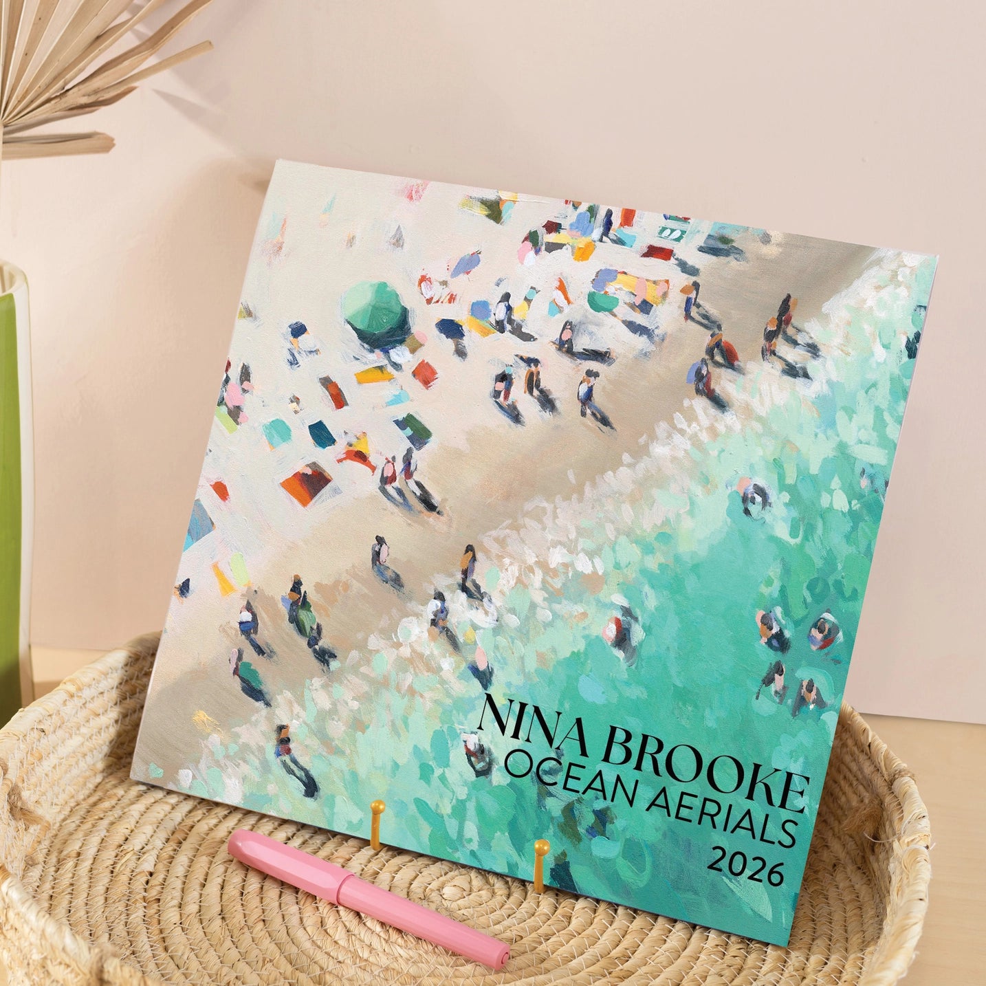 A peaceful 2026 wall calendar featuring aerial seascapes by Cornwall-based artist Nina Brooke. Each month offers a calming view from above - parasols on sun-washed beaches, boats floating in turquoise bays, and warm coastal energy.