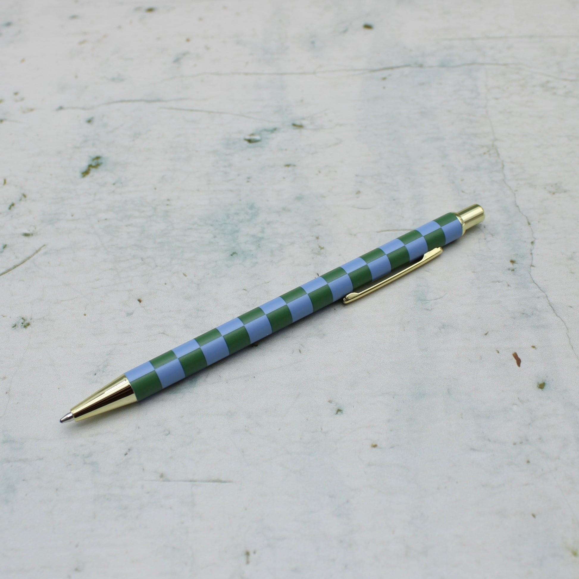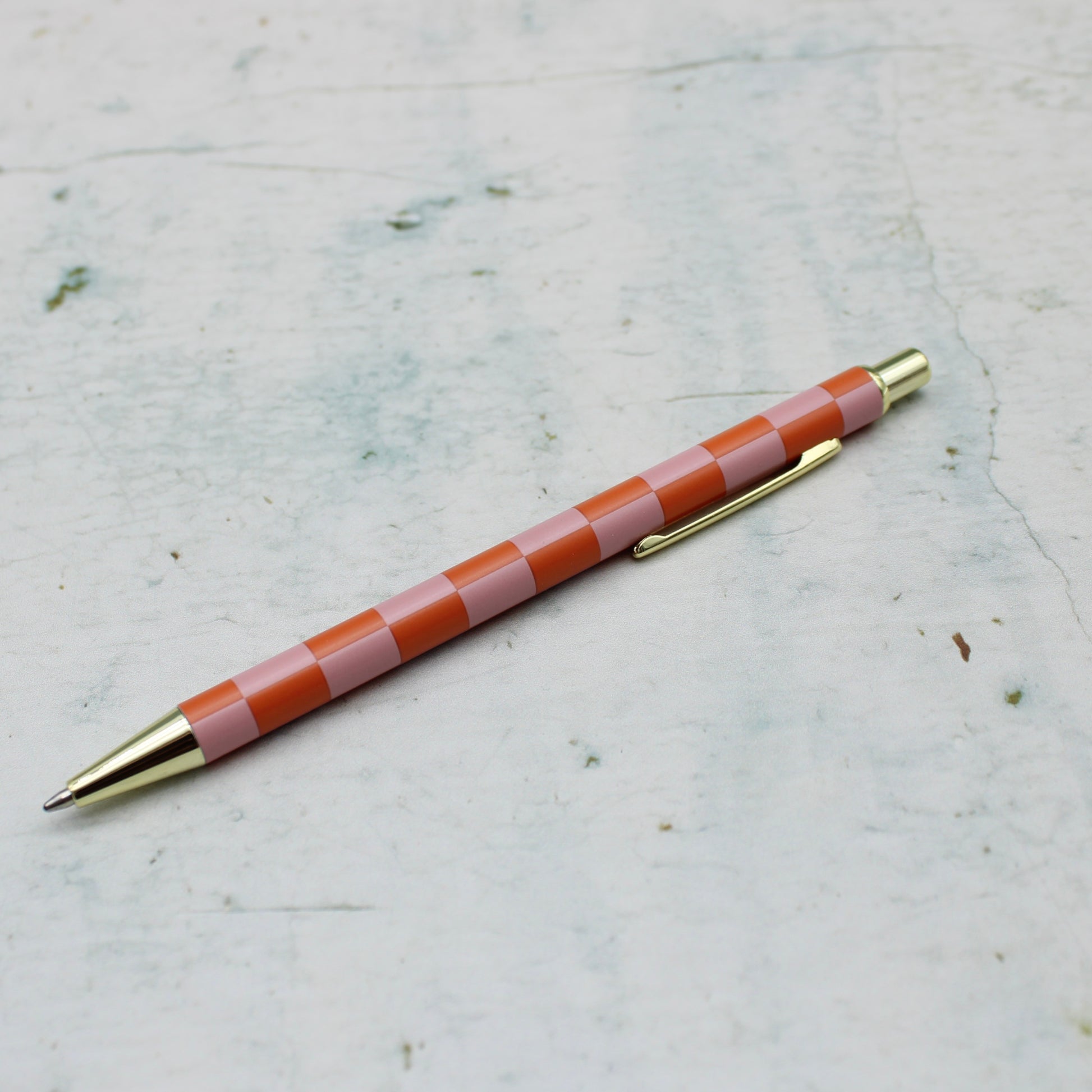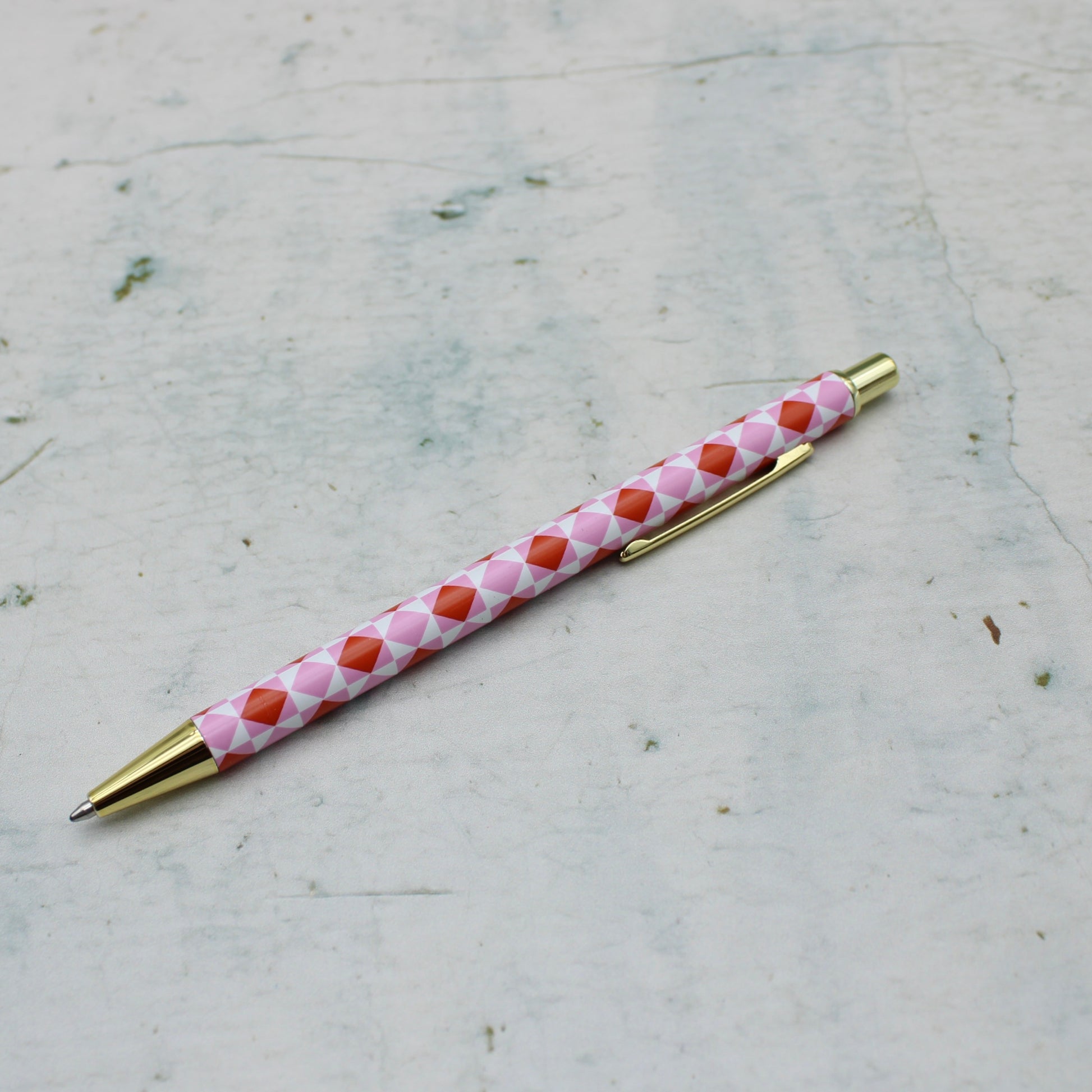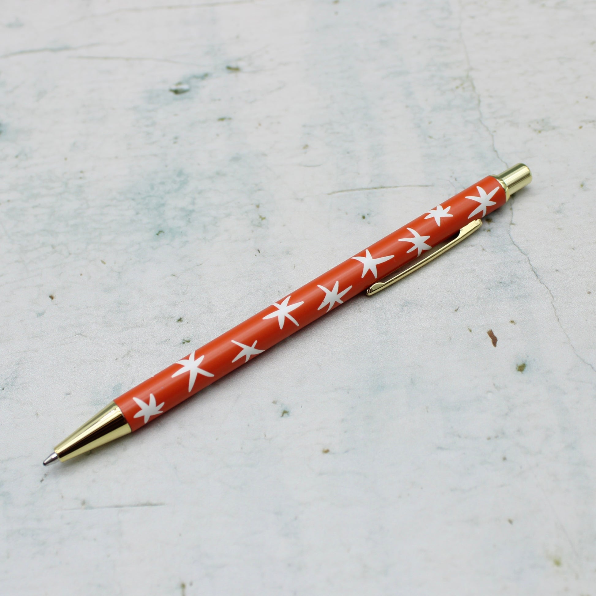 - Patterned pen with gold accents