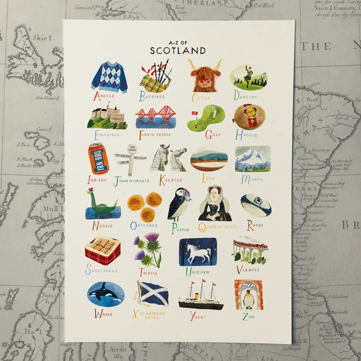 Discover the charm of Scotland with this A-Z Scotland A3 Print, showcasing the country’s iconic landmarks and breathtaking scenery. Perfectly sized for any living space, it makes a thoughtful gift for those who love exploring Scotland or remembering its unique beauty. Celebrate Scottish heritage in a stylish and meaningful way with this elegant print.
