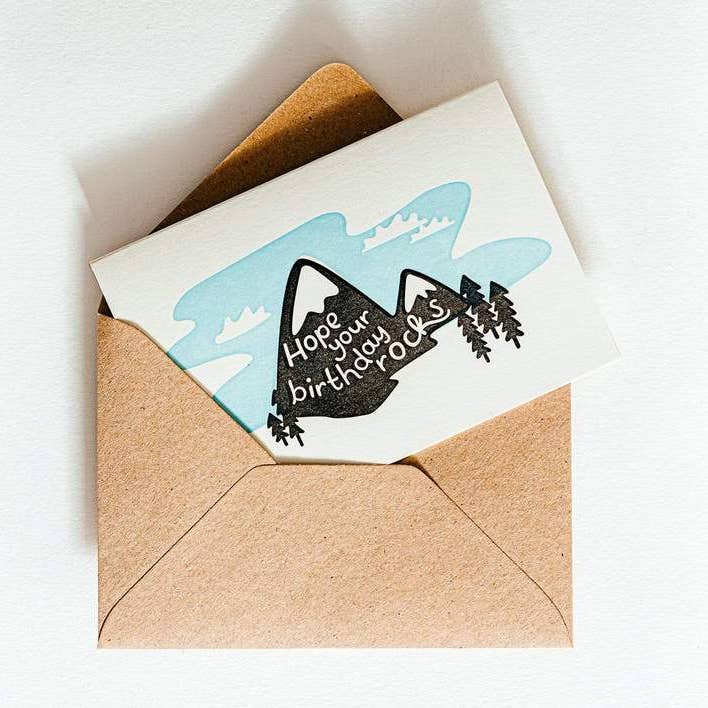 Every card is uniquely printed using a vintage 1960’s Heidelberg press, showcasing an exclusive hand-lettered and illustrated design. It comes with a recycled Kraft envelope and is finished with an eco-friendly, plastic-free sticker for sealing.