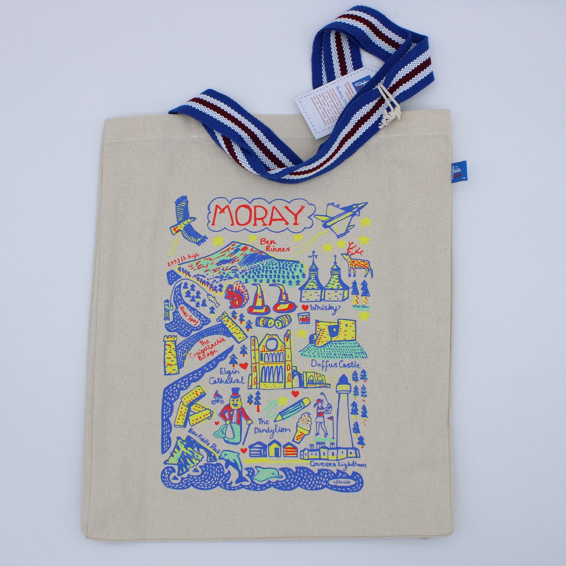 Expertly designed for durability and style, the Moray Tote Bag showcases iconic places and monuments of interest from the region. From sightseeing to shopping, this tote bag is the perfect companion for your travels. Represent your love for Moray with this unique and functional piece.
